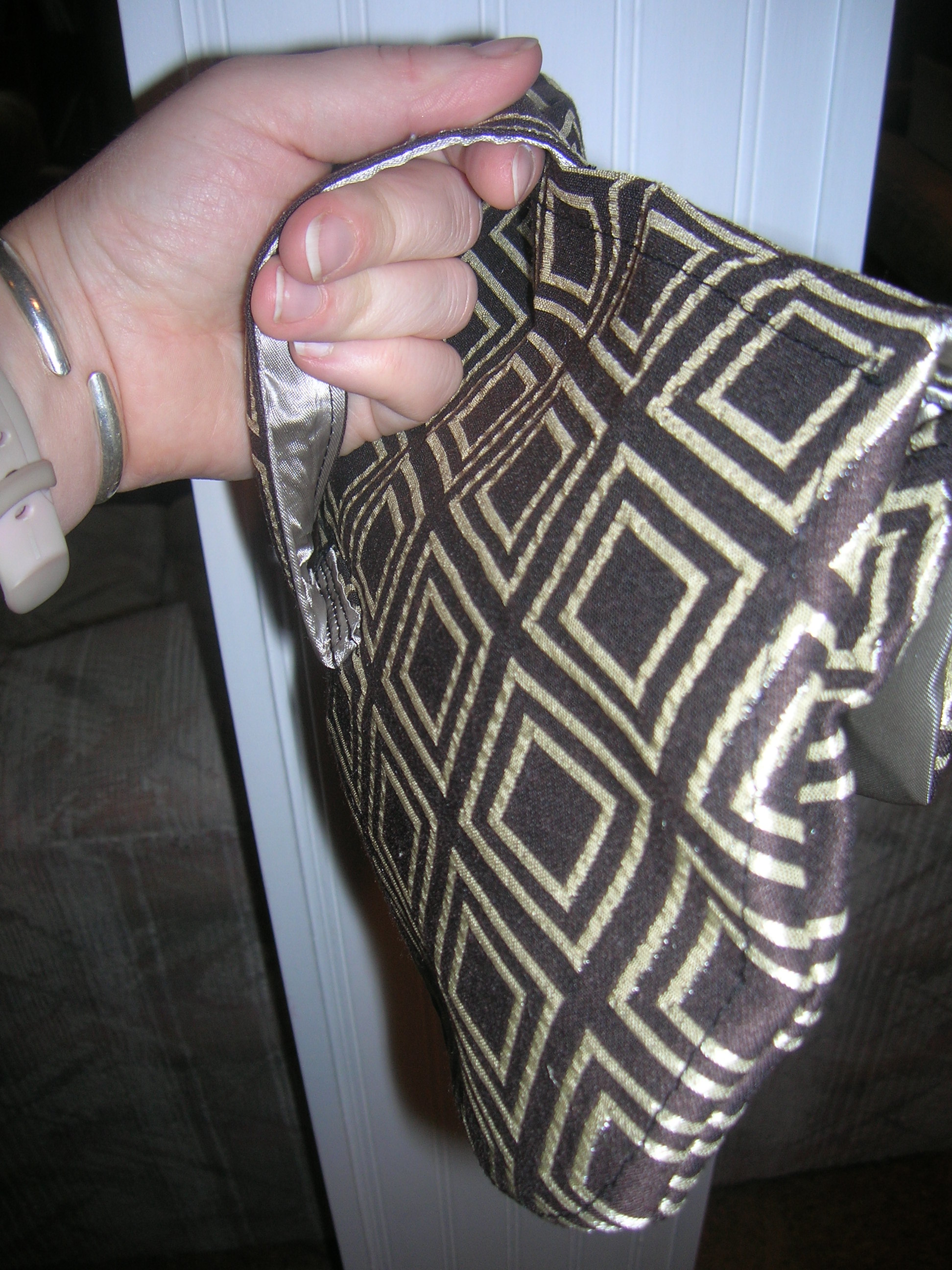 Since the magnetic snap has worked so well, I’m going to have to put off finishing my second bag until I go and buy another. The pattern I was using called for Velcro, but I thought that would look tacky with the fabric and not really hold up to repeated openings. I only bought the one to experiment with, just in case the pattern was actually correct and it needed to have Velcro. I’ll post pictures of the second (and possibly third) bag when I finish them.