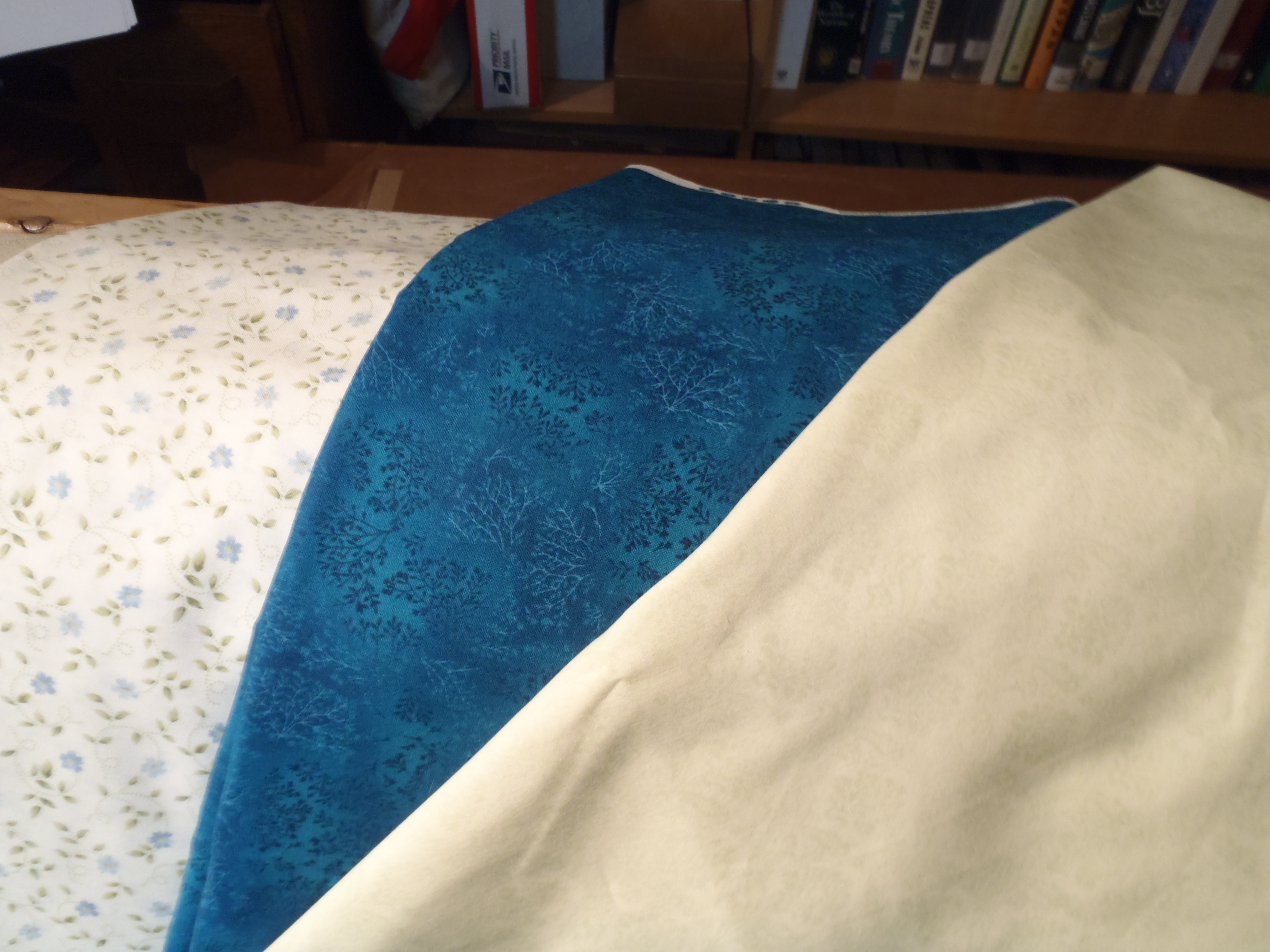 Plus I didn’t have to run out and buy any fabric or batting or thread. I just pieced together the batting size I needed from the scraps I had around. This project was a great scrap and leftover fabric eater because you end up needing an 18×18 quilted square for the outside and a 20×20 square of batting and backing fabric for the inside. And color doesn’t matter.