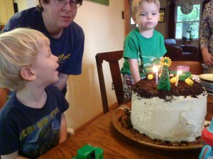 For starters, my baby boy, little H, turned 2 on Sunday. He is a tall little boy with a bright smile and brighter blue eyes who is showing some willful 2-year old tendencies. For example, his morning was ruined yesterday because he didn’t want to change out of his pajamas. Though I have shared the same sentiments I didn’t let that stop me from sharing the life-lesson that the world is not fair. He liked his cake, but he liked the tractors on top of the cake better. He had one bite of his cake and then played with the tractors for the rest of the evening. Clearly this comes from his father because everyone from my lineage mainlines the cake and throws the cheap plastic crap that came on top of it into the nearest corner only to be excavated years later by small children playing Indian Jones.