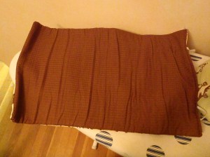 And as a bonus to her I sent her a changing pad. It was a prototype using some iron-on vinyl I’d never used before so I stuck it in for free. The iron-on vinyl went on like a dream and I’m excited to try it for other projects. For the inside of the changing pad I used a waffle-woven fabric in a brown that matched the fabric collection and I batted it with cotton quilting batting. It looks pretty slick.