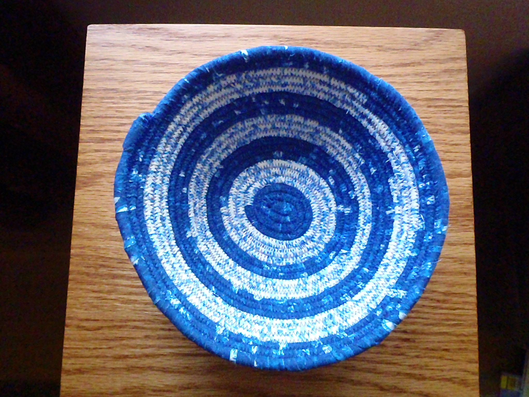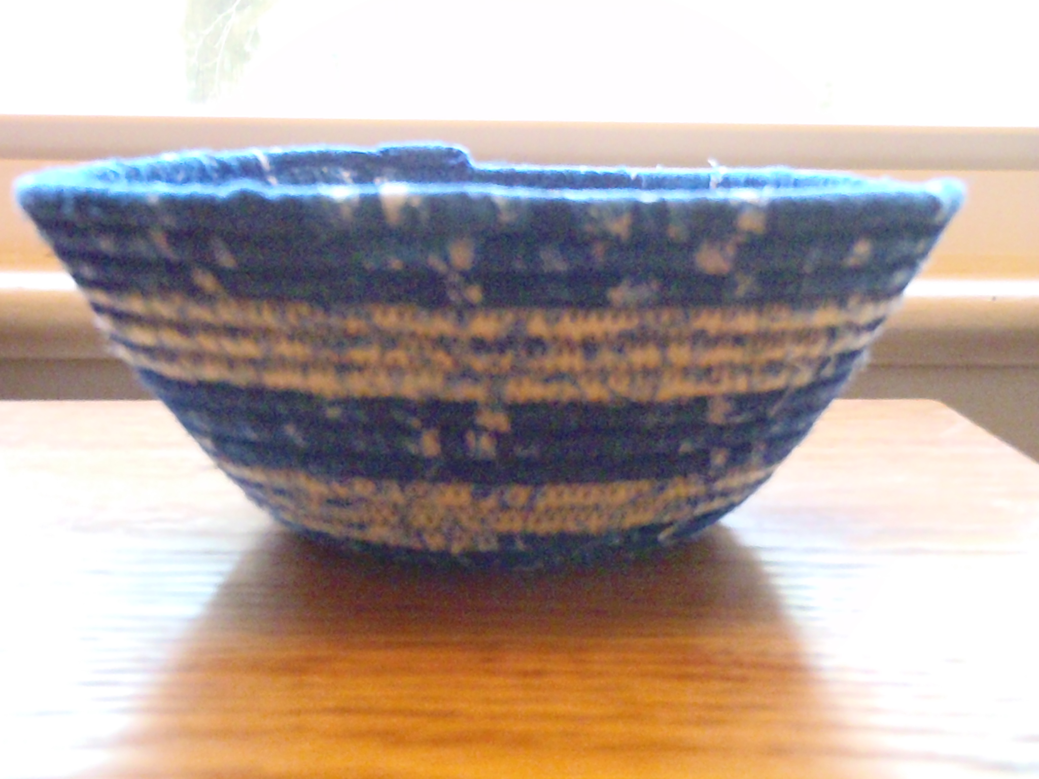 It turns out that the foundation of a coiled fabric bowl is clothes line. I was surprised, but I set out to find some. How hard could it be? The media is all “eco-friendly this” and “eco-friendly that” and what is more eco-friendly than a backyard clothes line? In fact, I bet clothes lines have got to be everywhere. Maybe even in the supermarket. Went to Safeway. Nope. Went to the local hardware store. Nada. Went to Home Despot. Nothing. I asked a guy there where I might fine the clothes line and the look he gave me told me that he not only didn’t know what a clothes line was for, he probably couldn’t find the washer and dryer inside his own house. So, I decided that bowls would have to wait until Spring when the stores would surely restock their supplies of clothes line.