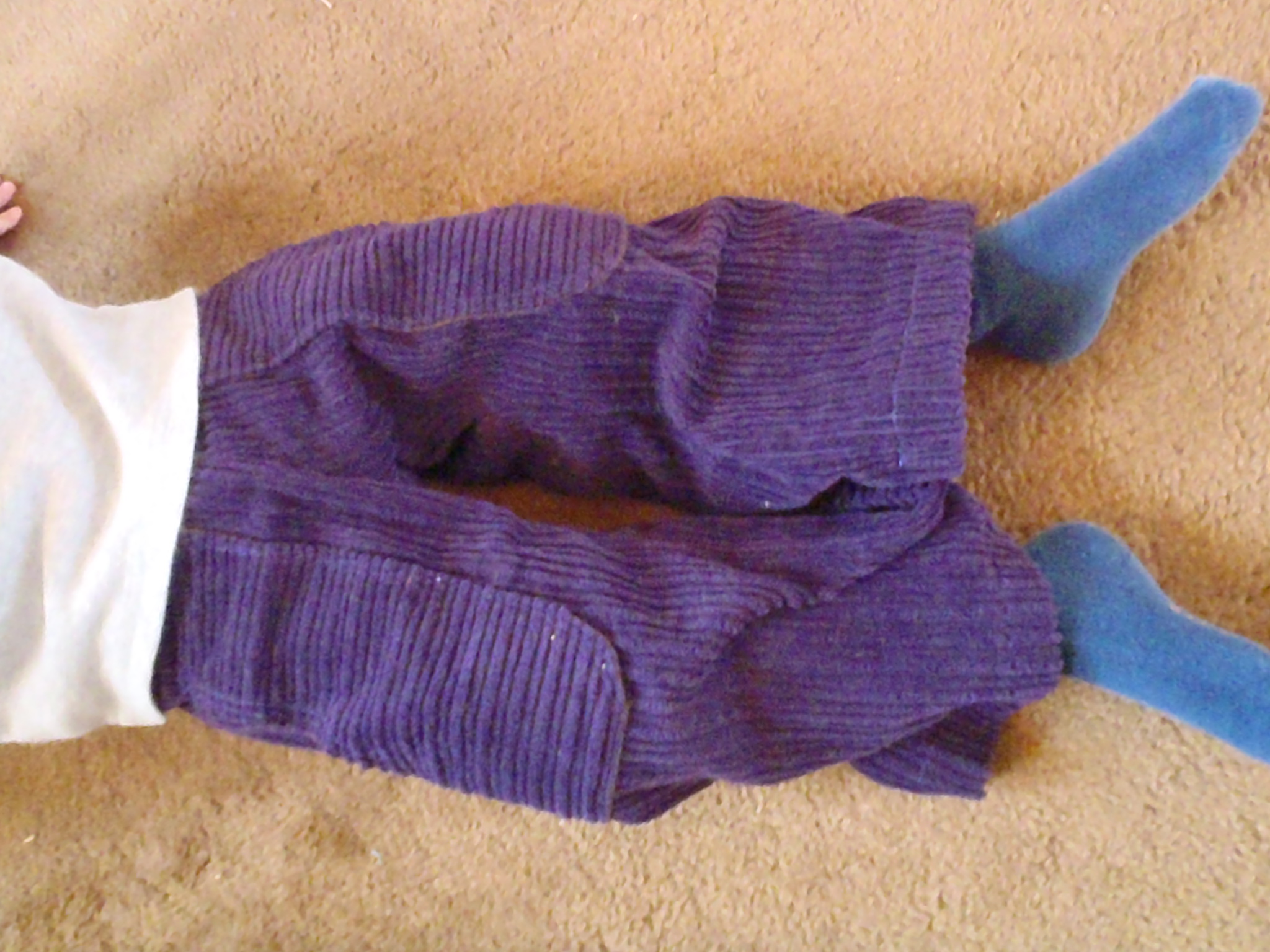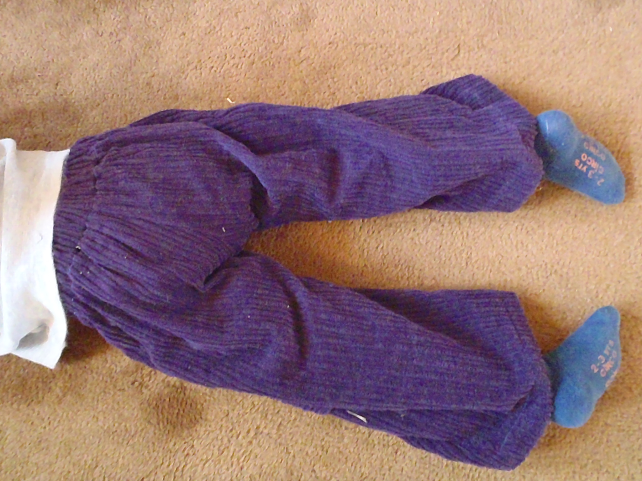 I mentioned in my previous post that I made H a pair of purple corduroy pants for Christmas and I promised that I’d post some pictures.