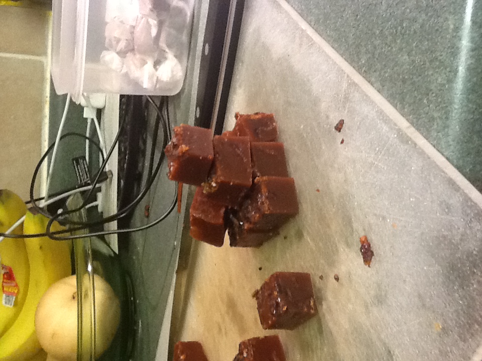 And when she says to have your loaf pan ready before you begin to cook the sugar she is NOT KIDDING. One you start cooking the sugar and cream mixtures you are effectively chained to the stove. I also struggled with the size she meant. Did she really mean a bread loaf pan? Can you get 72 caramels out a standard bread loaf pan? Maybe she meant an 8×8 pan? But, no. She really means a bread loaf pan.