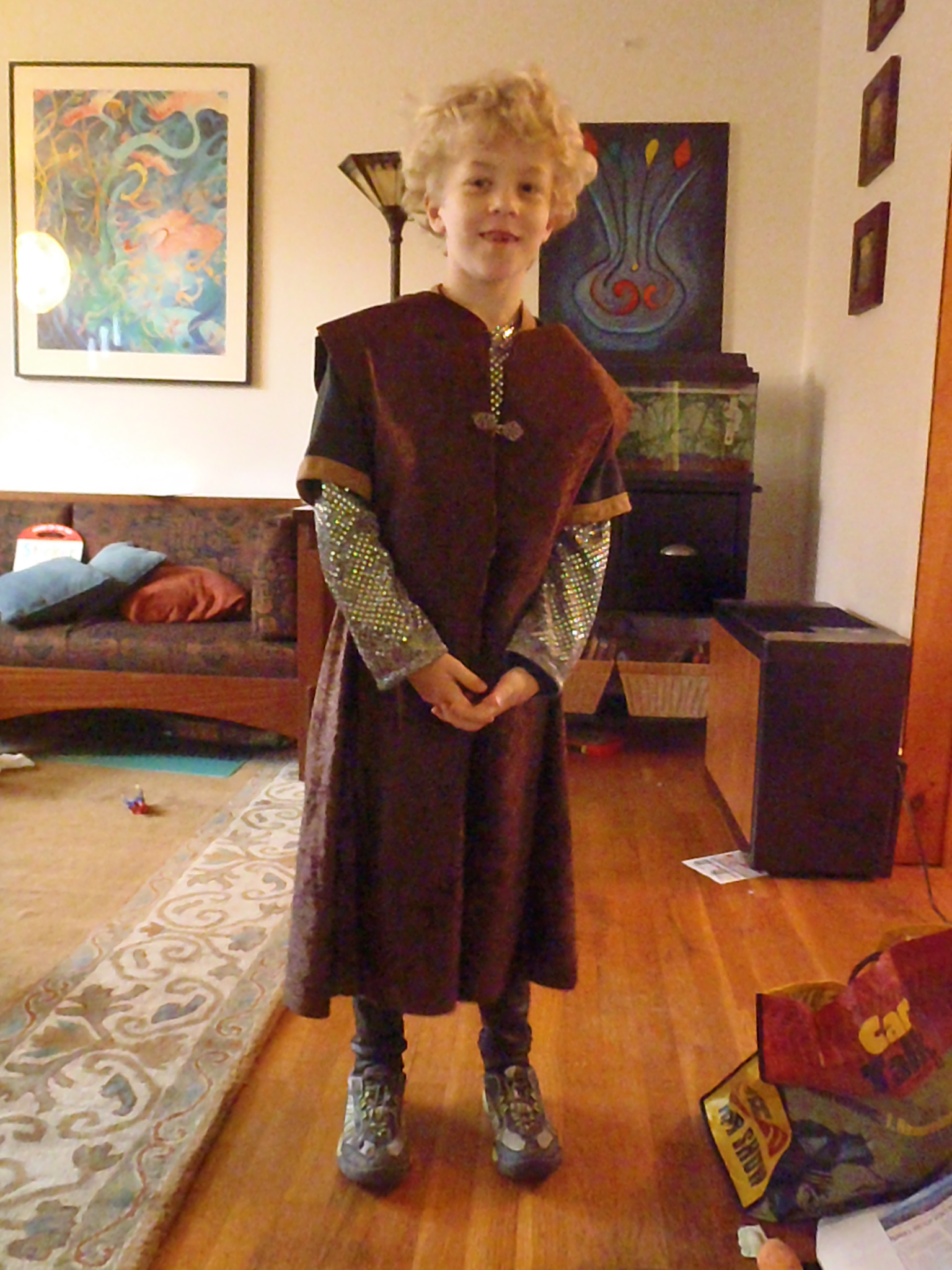 And it turns out that he was serious about being Boromir. “Mom,” E said, “Boromir has chainmail and a cape.”