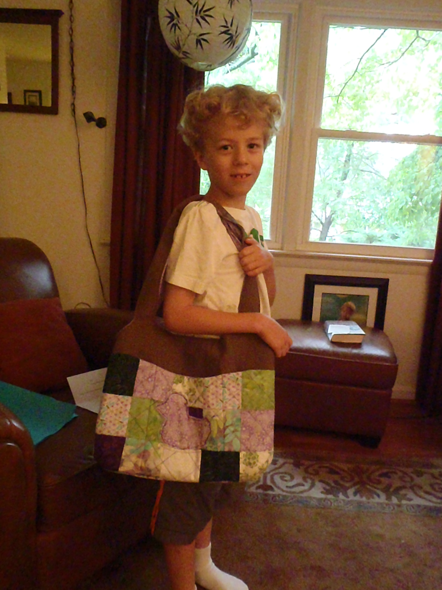 But before school was over, E (who is 7 & 3/4 now) wanted to make his teacher an end-of-year thank you gift. He wanted to make a bag. He let me know this about 3 weeks before the end of school so, theoretically, I had time to make it with him. But, of course, the end of school also include a sudden whirlwind of activity – playdates, beginning of swim team, guitar juries, copious amounts of baking for small celebrations, and running procrastinated-on errands. The bag? Became a last-minute project.