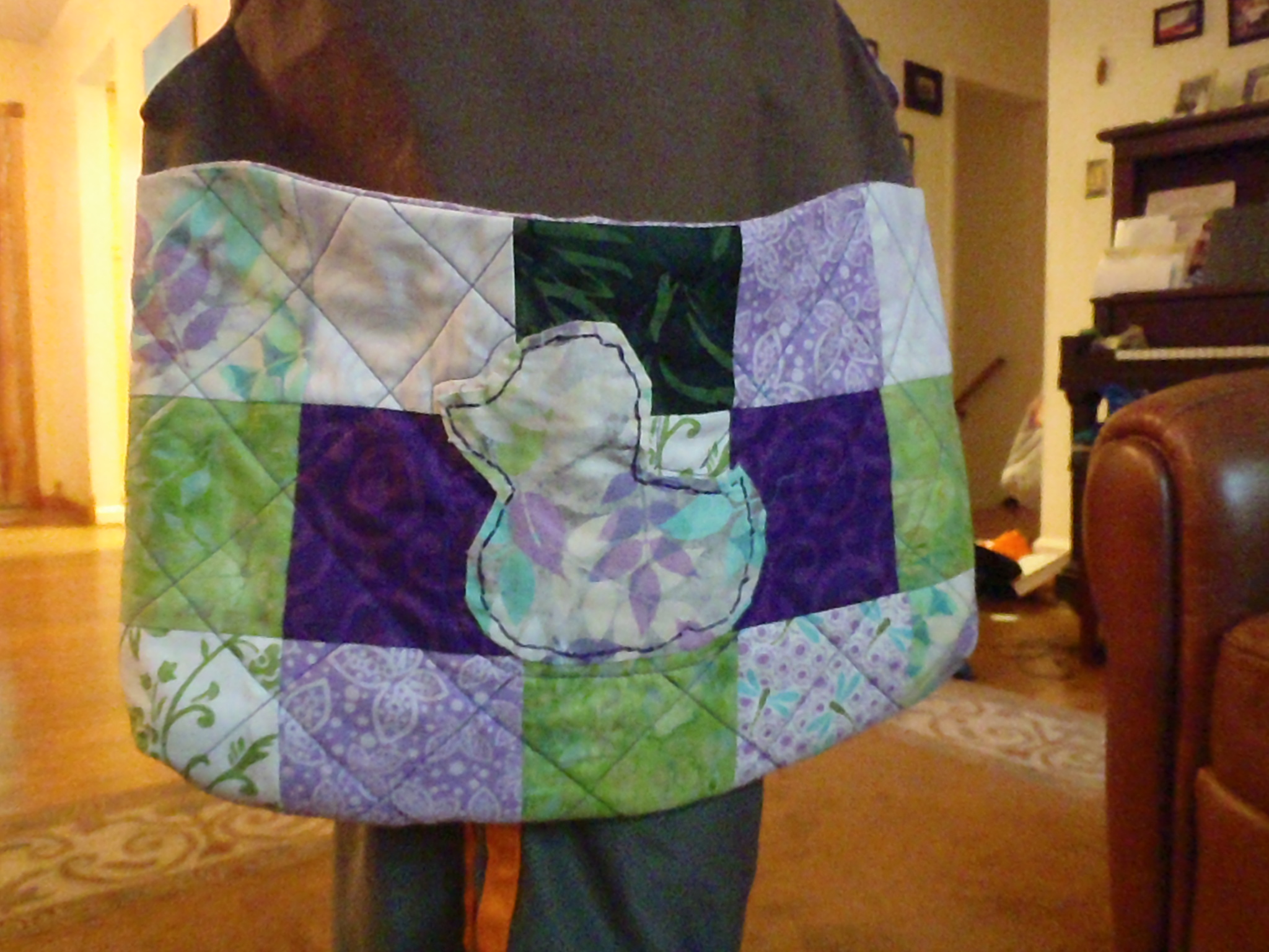Mrs. A-O *loved* the bag. She told me that she was going to use it as her Math bag. All the math books that need to be checked are going to go into that bag so she can haul it with her and check problems on the go. I am so happy that E designed such a useful gift. Yay!