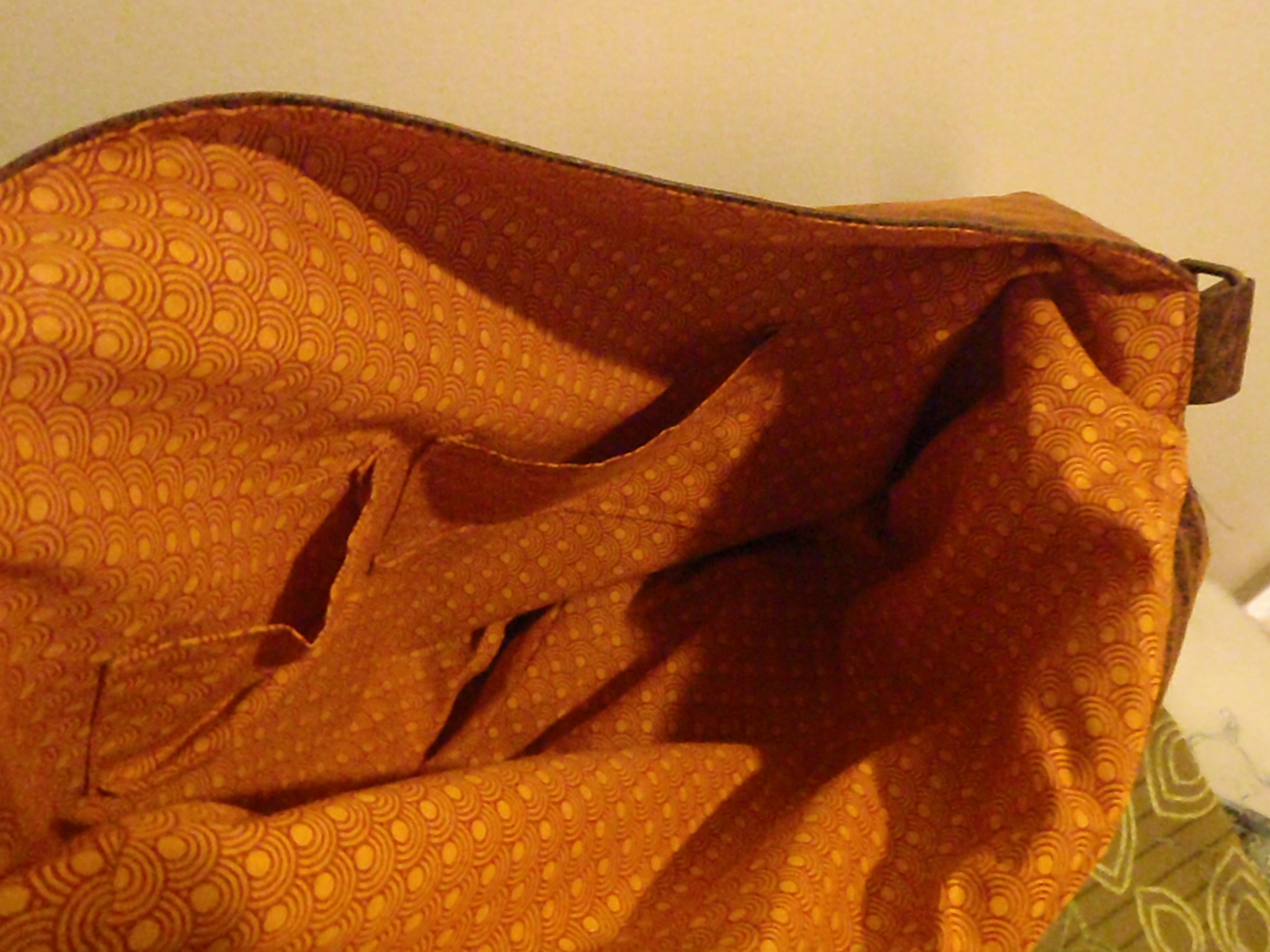 I gave her a messenger bag. It was out of some discount, end-of-the roll couch fabric from G Street. The lady who cut it for me said, “Oooo! You have good taste! This was orginally $68.00 per yard!” I got it for $6 per yard.