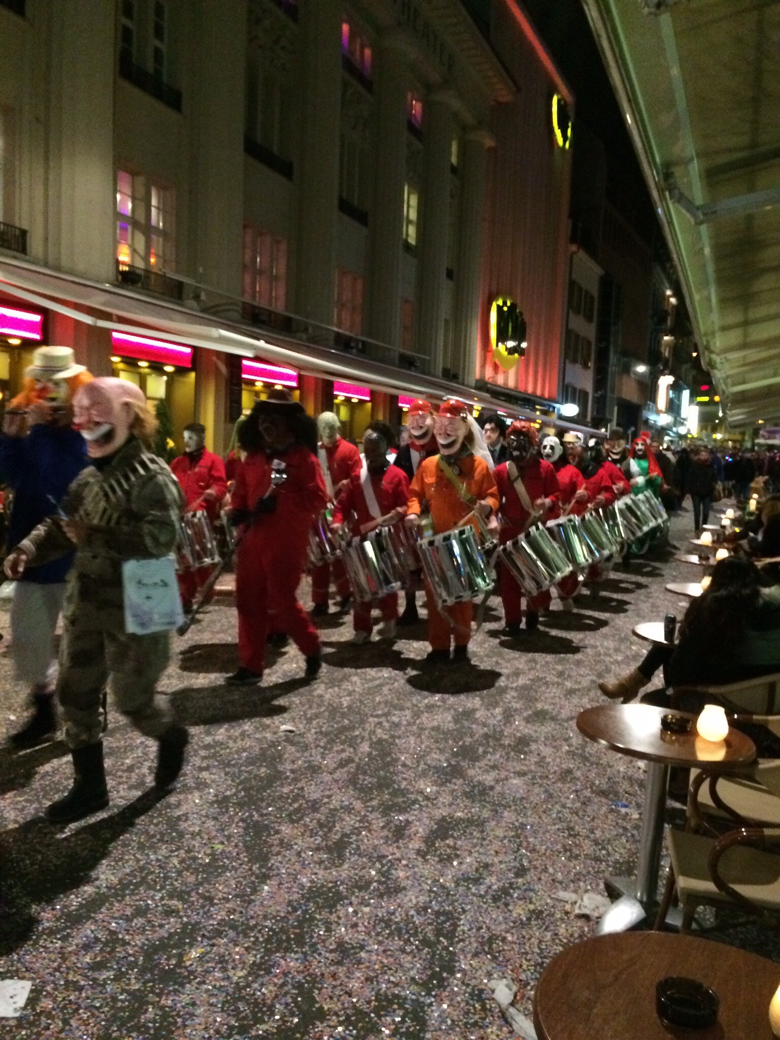 This is a Big Deal here in Basel. More people come home for Fasnacht than do for Christmas. Partially it’s because when you grow up here your family typically belongs to a Clique (pronounced Cleeg) that participates as masked characters. You are pretty much born into a Clique. There are some that are open to new and non-family members, but it’s almost like a secret club that you get introduced into. They don’t typically advertise for members. So, when you grow up and move away you always come home to participate in your Clique.