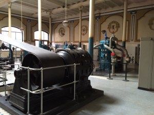 This is the old cooling room. All those fantastic machines still work.  They not only provide inspiration for Steam Punk costumes, they also provide all the cooling needed to keep the lager at the proper temperature for fermentation.