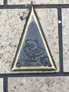 The beautiful thing about following the owls is that it really helps to get the children into the spirit of sightseeing. They hunt for those little triangles and then when they found the bigger brass plaques the boys were springing up on top of them and begging to be told what was special about that particular spot.