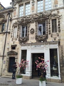 We made it to a rainy Dijon and to our hotel in no time. They do have mustard in Dijon. They sell it everywhere, including in the lobby of our hotel. Our hotel, The Hotel Montigny had just been renovated. It was a 2-star hotel with 3-star aspirations. Certainly the breakfast was 3-star. On top of all the pastries you’d expect in France, they even had pancakes for E and Nutella for H!