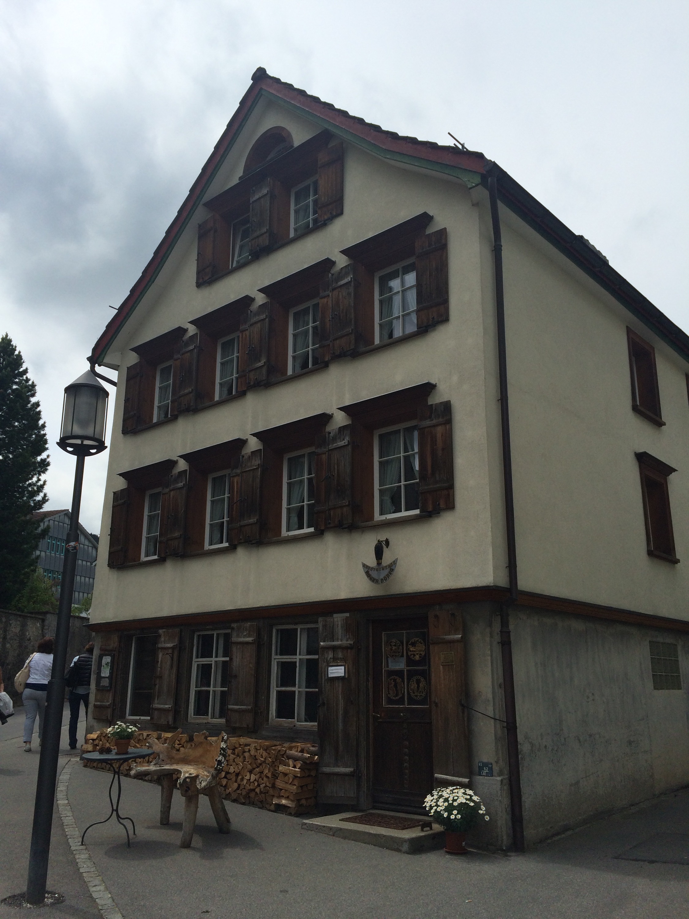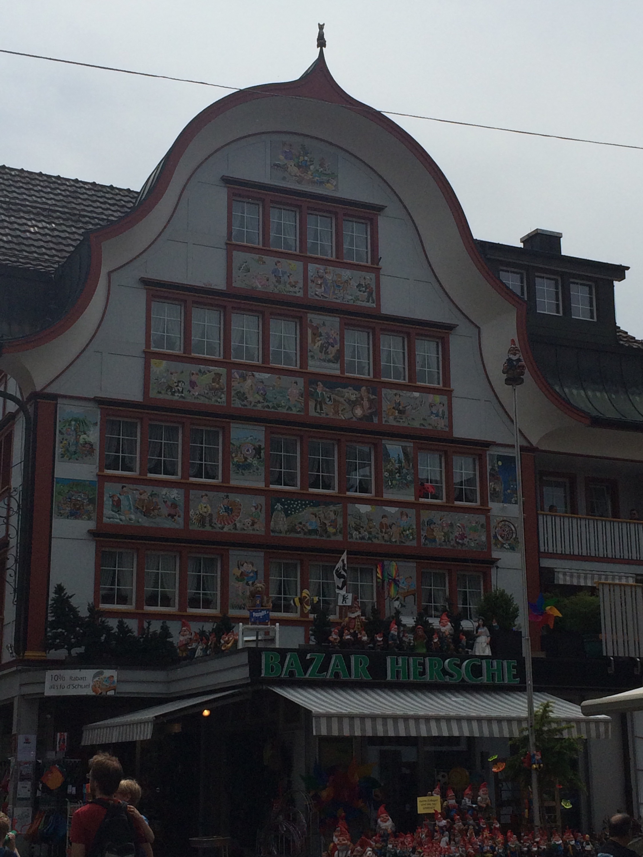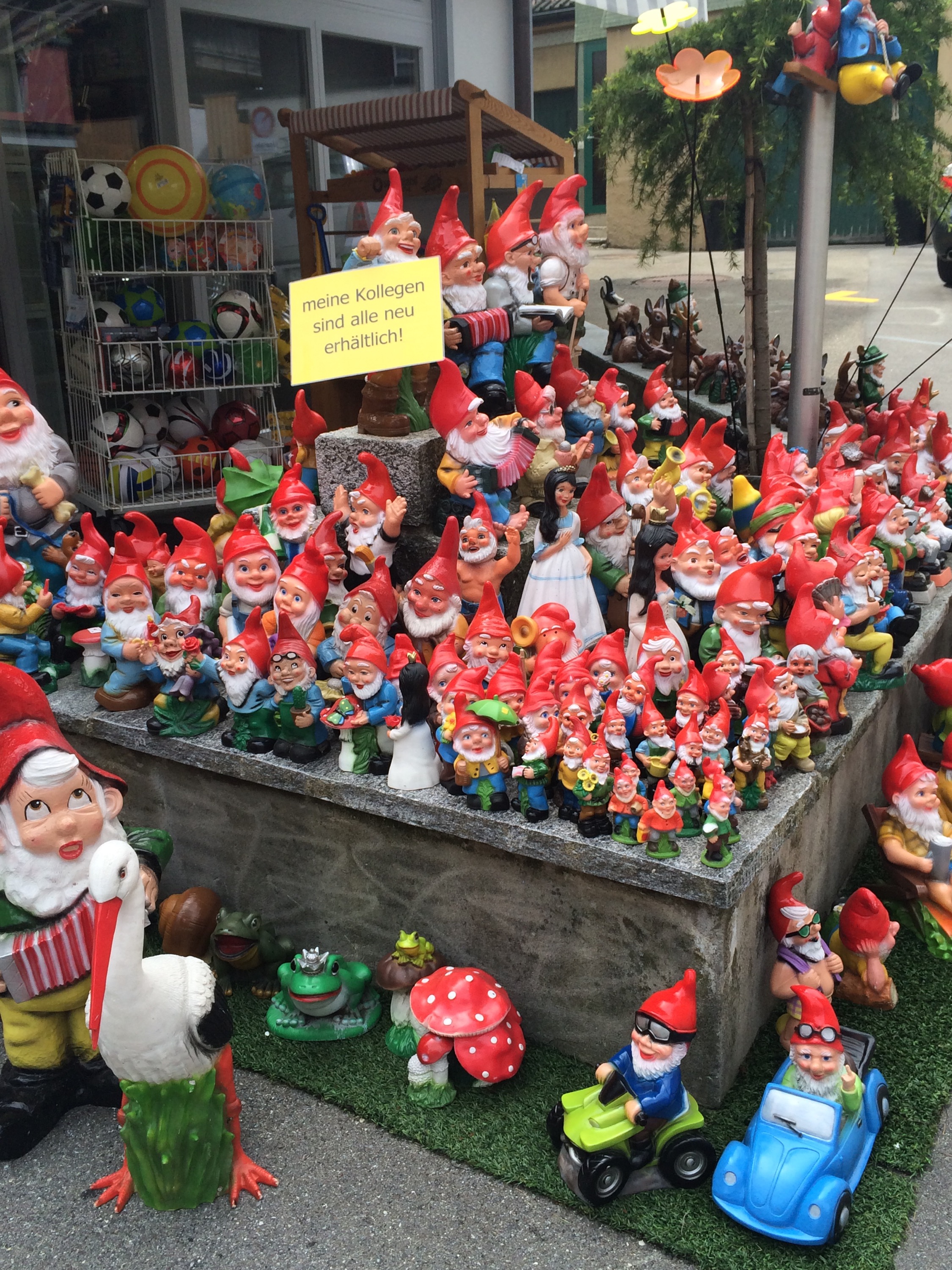 We cleaned ourselves up and headed out to explore and find food. Appenzell itself is a wonderful town. Complete with a gnome village.