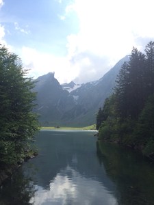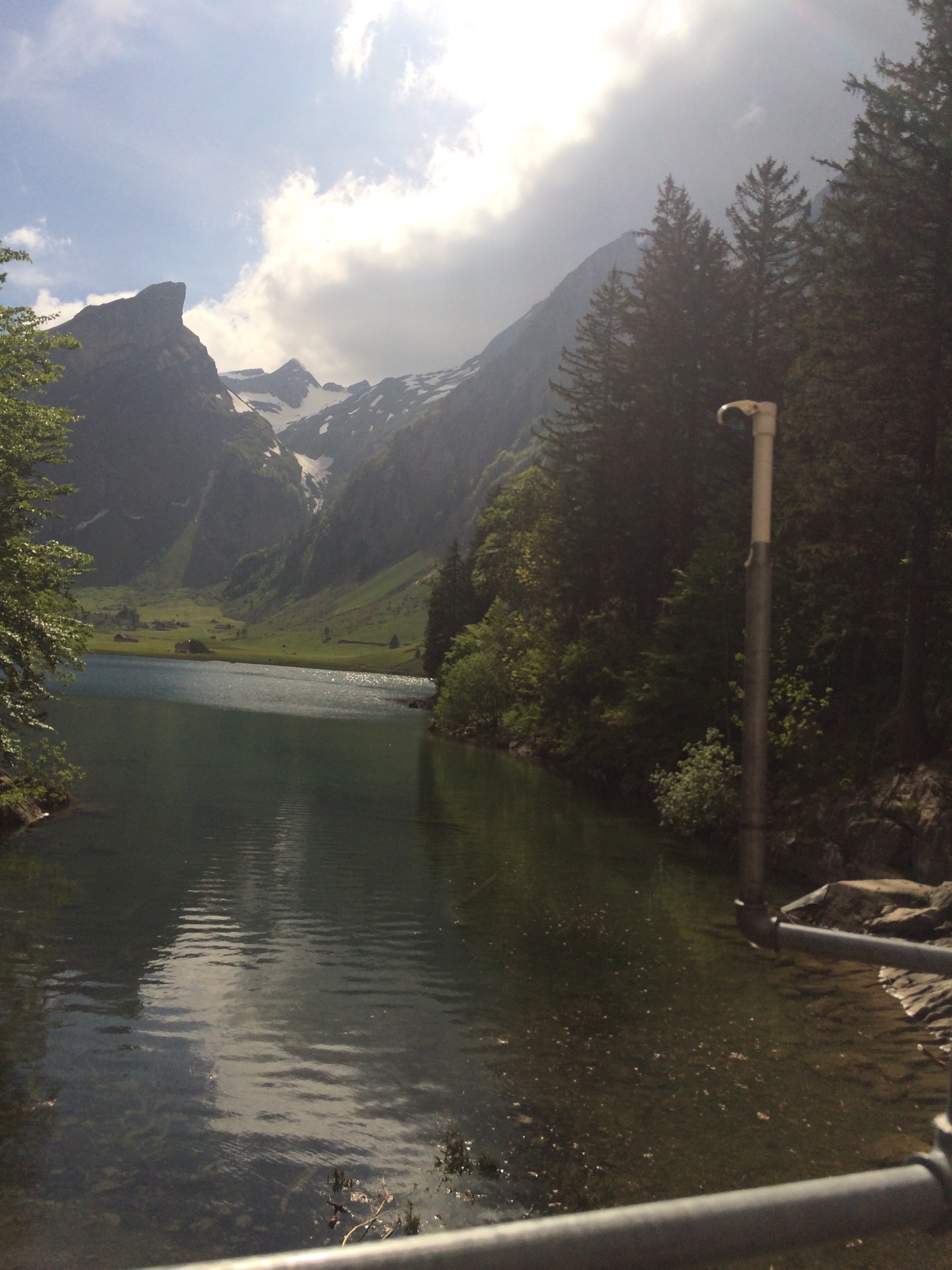 We were going to go hiking in the mountains. And not just any mountains, the ALPS! Our goal was the lake known as Seealpsee. It’s a small resort kind of place with some chalets for skiers in the winter and campers in the summer. A picturesque lake is nestled in a bowl-shaped valley and surrounded by mountains. We could still see snow at the very tops and some of the hikers coming down while we were going up had snowboards and skis strapped to their packs.