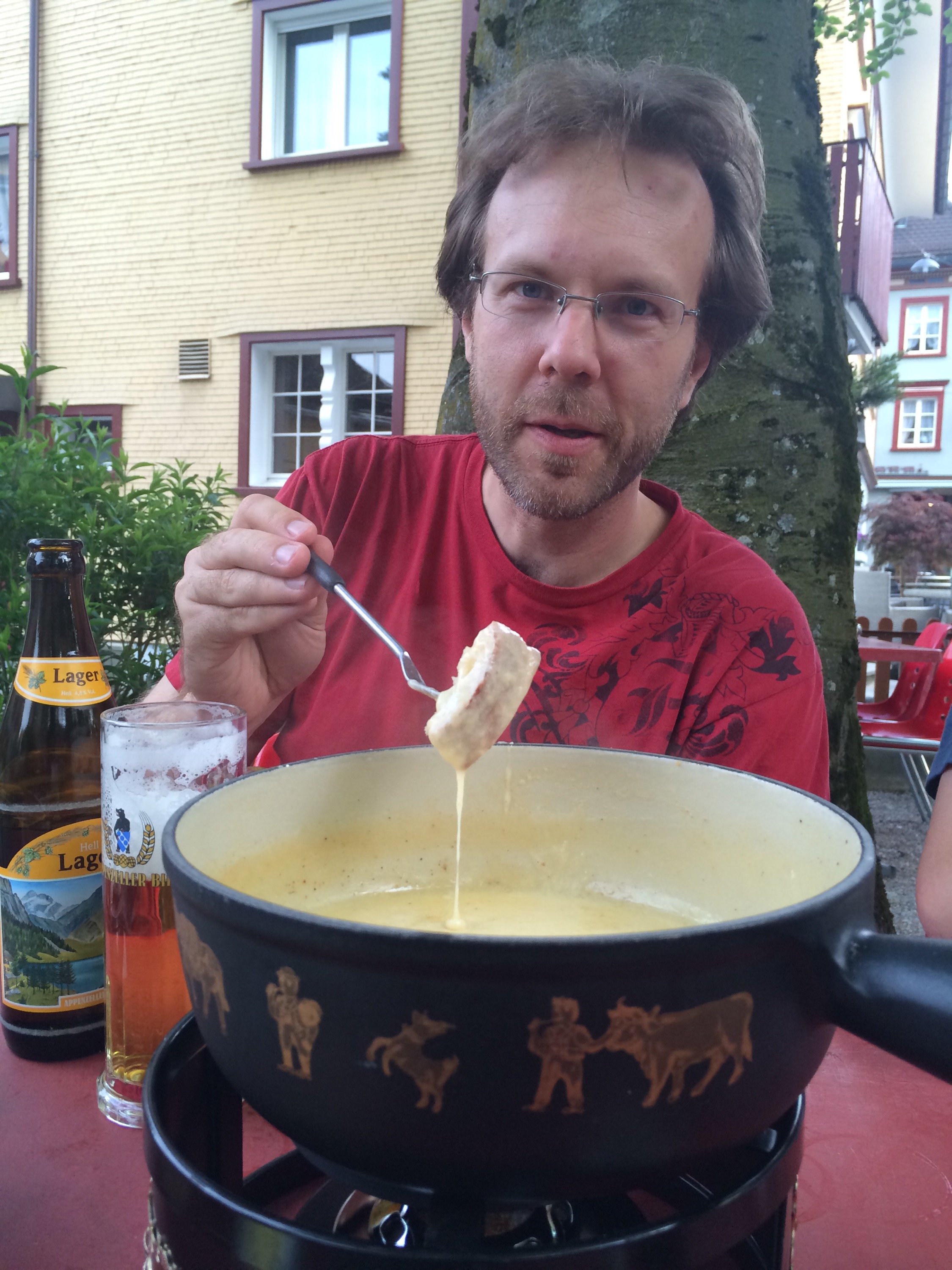 We also found the most awesome outdoor fondue restaurant ever. The kids had pork schnitzel and fries and Mark and I had an incredible Appenzeller cheese fondue with a couple of tasty beers.