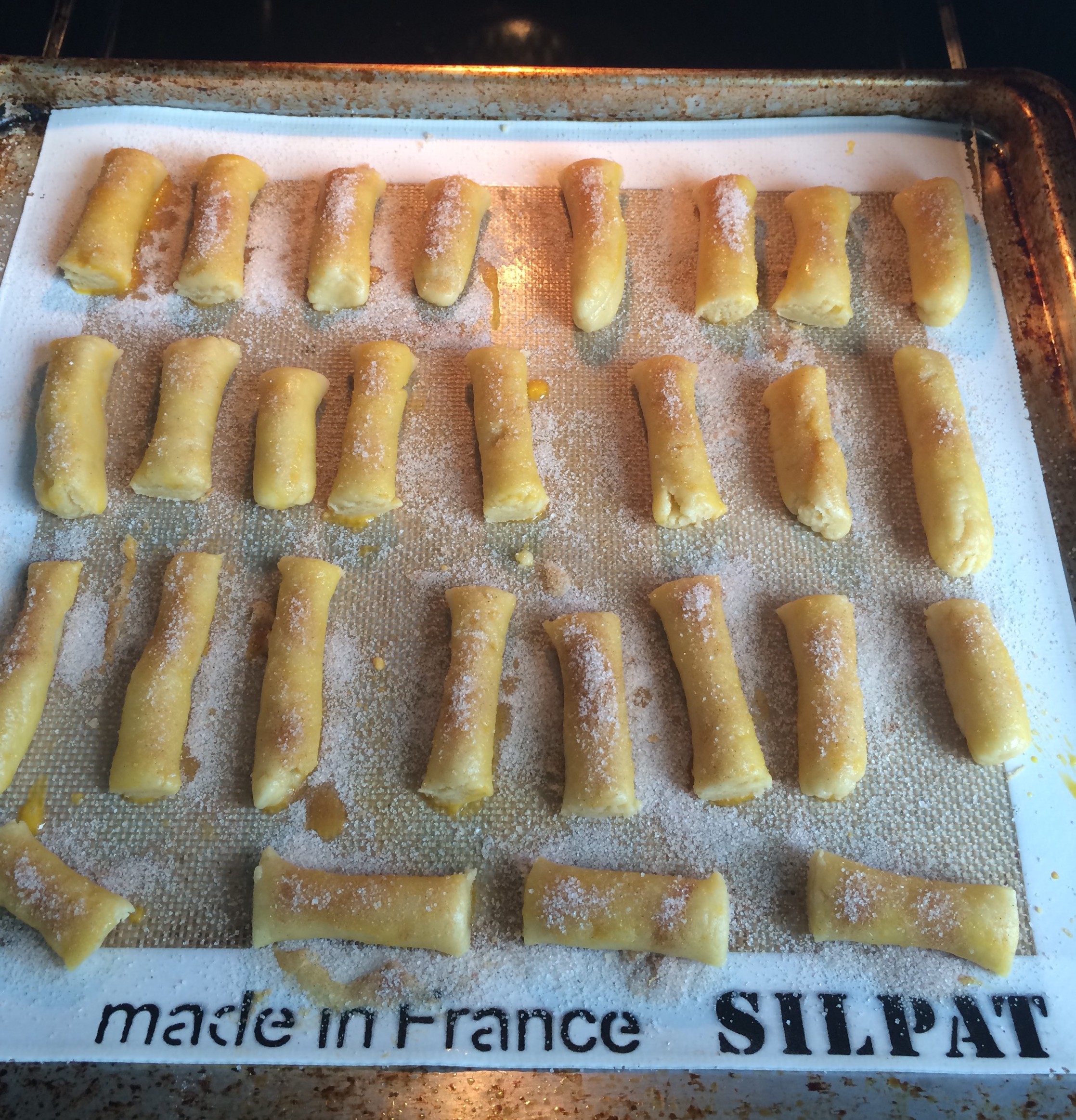 By the end of the batch I had figured out a kind of trick.  I needed to alternate between rolling the dough about 3 times and gently squeezing it back together until it was the length and thickness I wanted.  After I figured that out the cigars didn’t take me too long to make.  I also decided cigars are where it’s at.  They will never be bretzel-shaped in my household again.