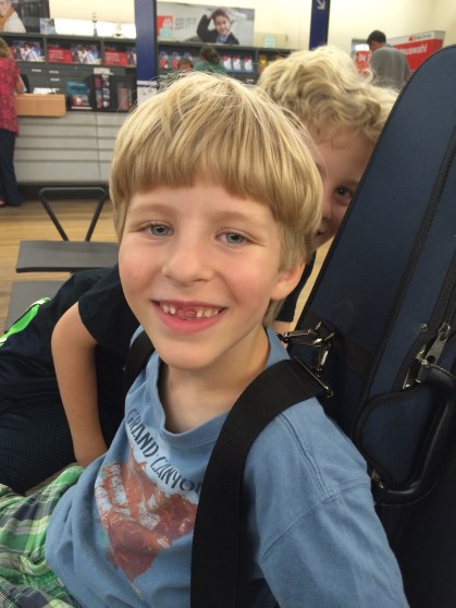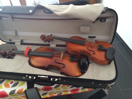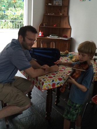 H slung the violin onto his back and walked with jaunty steps, humming to himself. When we got home he asked Uncle Erik for a lesson and the two of them working together is one of the cutest things ever.