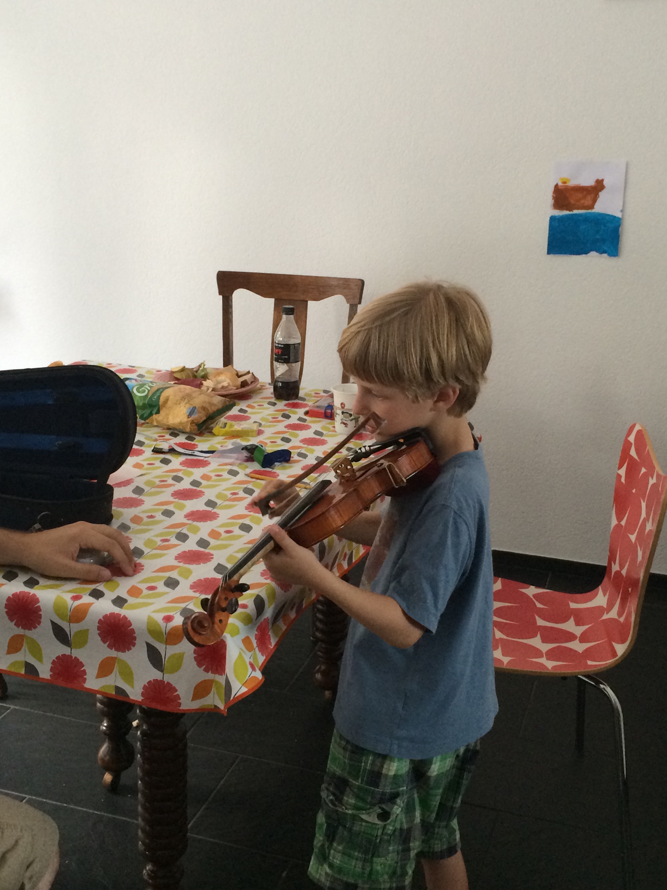 We’ve had the violin for 3 days now and he has played it 9 times. Every time his tone is brilliant and clear and he clearly wants to learn more. (Uncle Erik! Where are you!!!)
