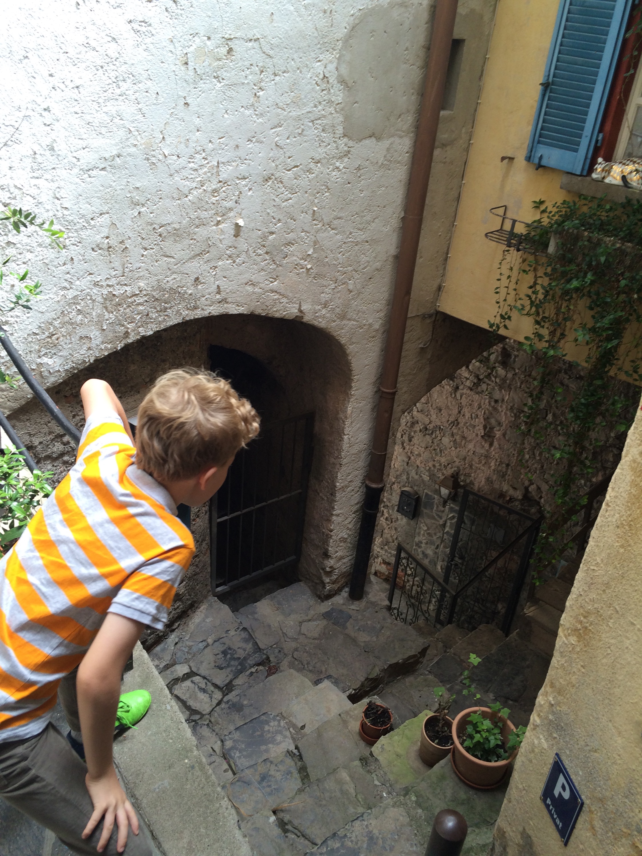 After ogling and walking around the town for well over an hour we found our way back through the maze, into the tunnels, and back onto the boat. In an unexpected moment I found that we were right on the border with Italy!