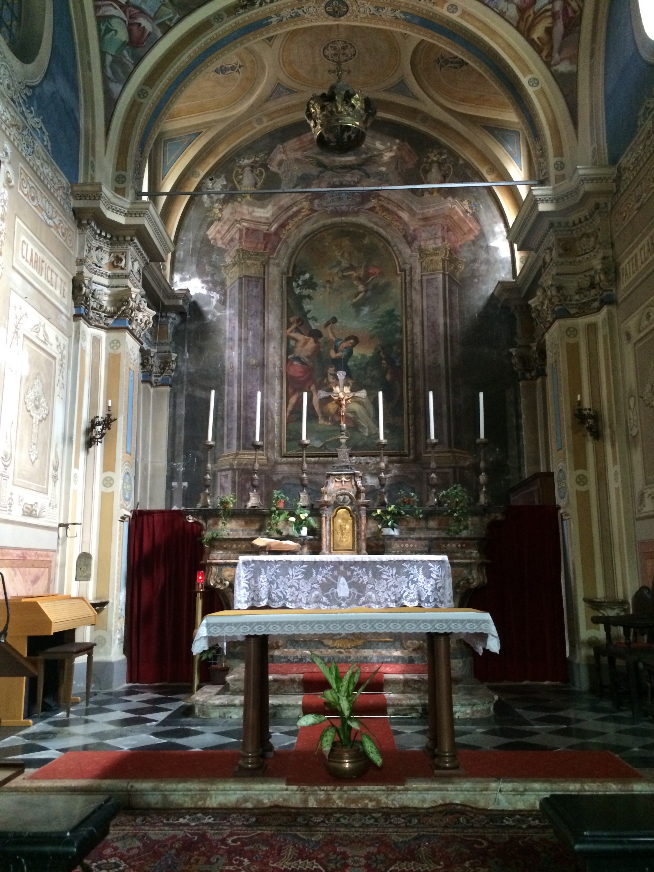 This is the Church of St. Vigilio. Named after Saint Vigilius of Trent, the church was built in 1463. However, the inside of the church is covered with molded facades and murals that weren’t completed until about 1870.