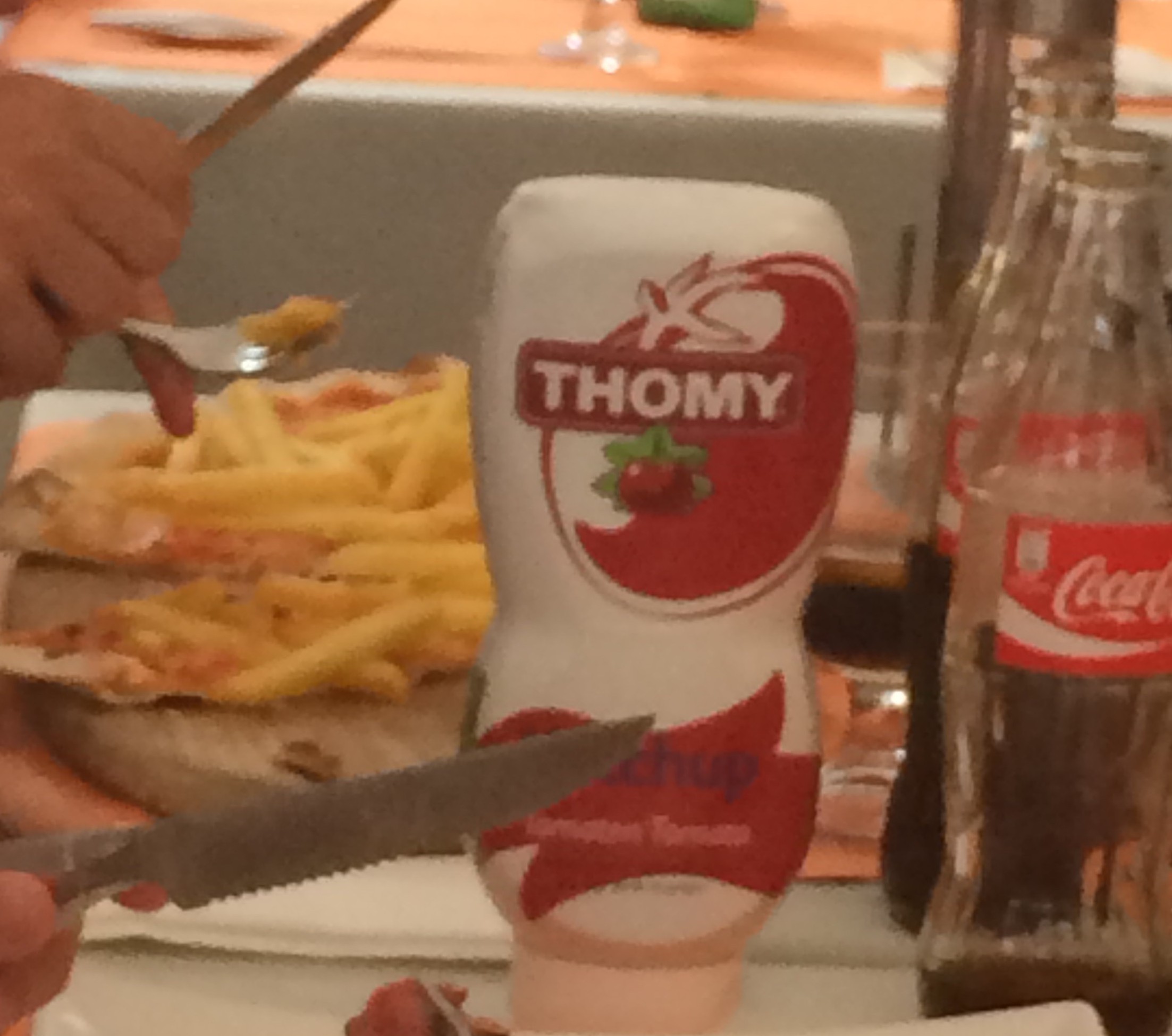 The other was a pizza the menu called “The Yankee.” It is a regular pizza with tomato sauce and mozzarella cheese and topped with French fries. I have never, ever seen anything like it. Ever. The photo is a little wonky because I was trying so hard to look like I was just checking my email and wasn’t taking a photo.