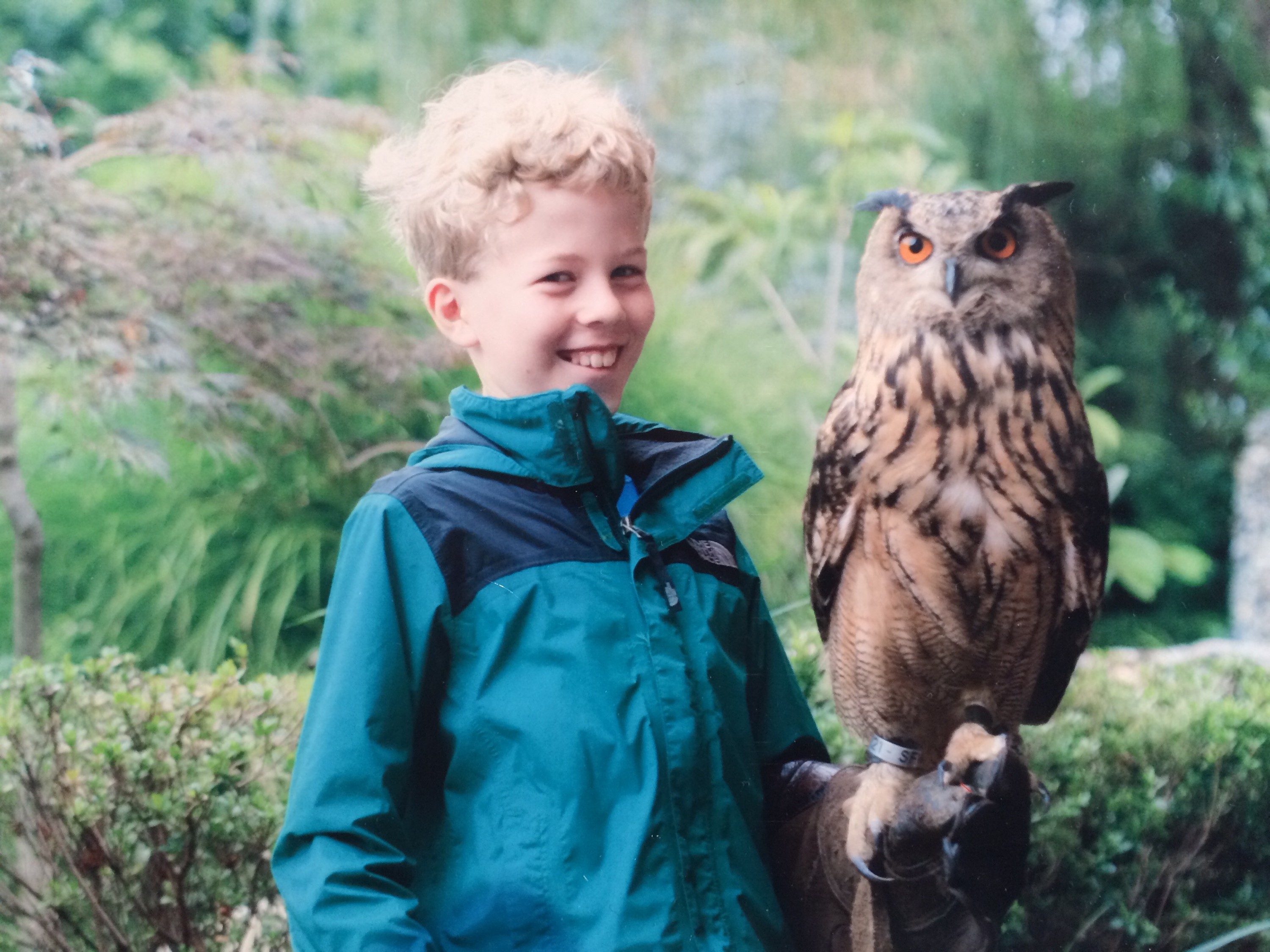 It was not the kind of sanctuary that we were used to. It was a research and entertainment experience. The actors/experts were dressed in William Tell garb complete with Tyrolean hats and breeches. They had eagles, falcons, hawks, vultures, buzzards, and owls flying literally inches over our heads. The hawk actually hopped along the audience members heads as part of the act. We were forbidden from taking any photos during the show, but we got this great shot of E holding an owl.