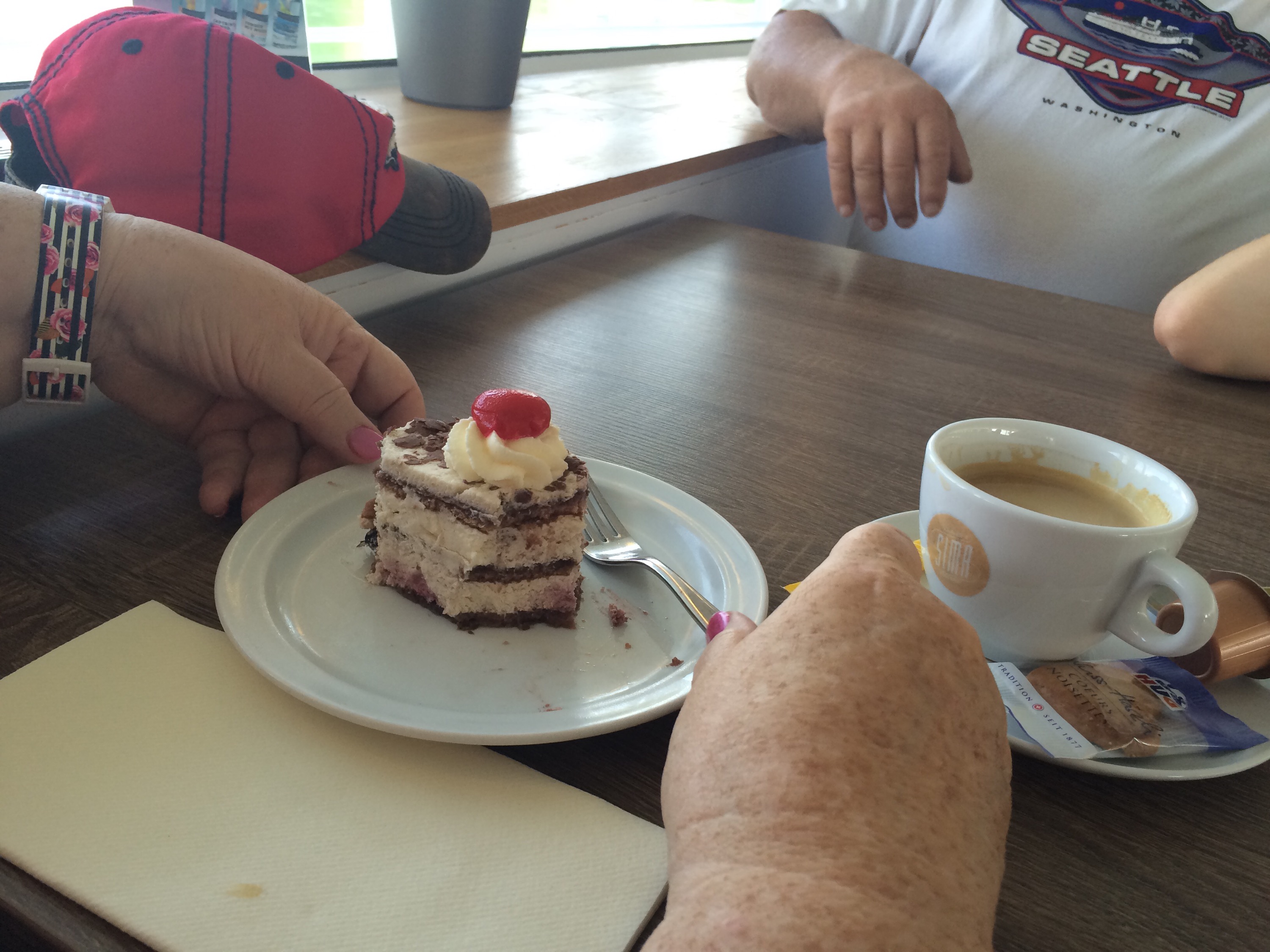We stayed on the boat because we wanted to get back to Basel by 5:00pm and meet Mark for dinner. As we paid our lunch bill, our very excellent waitress said she could secure us a table on the upper deck for the ride back. We decided to treat ourselves to dessert!