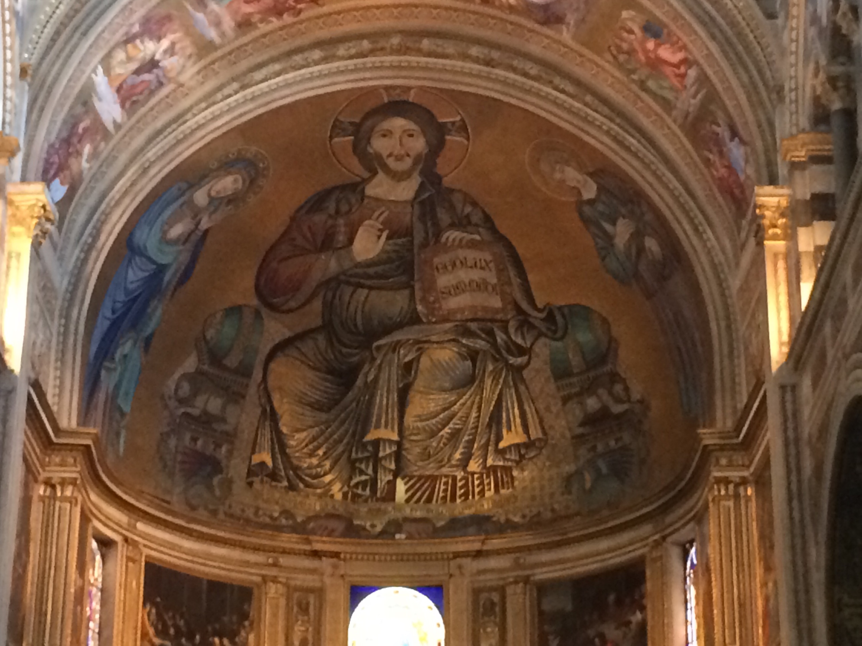 I was taken by the altar area of the Cathedral. The walls surrounding the altar are painted by masters, but the space right behind it is a huge mosaic.