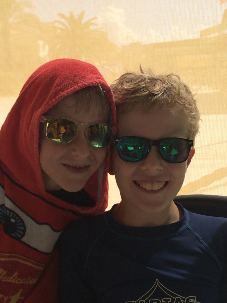 However, in Lido you get assigned a “spot.” It’s kind of a cabana area complete with sun umbrella, chairs, and side table. And it’s your spot. No one else can sit there. It’s helps the kids know exactly where their stuff is when they need it and you don’t have to lug all your crap down from the hotel room, down the street, and across the sand. It’s just right there. That is really lovely.