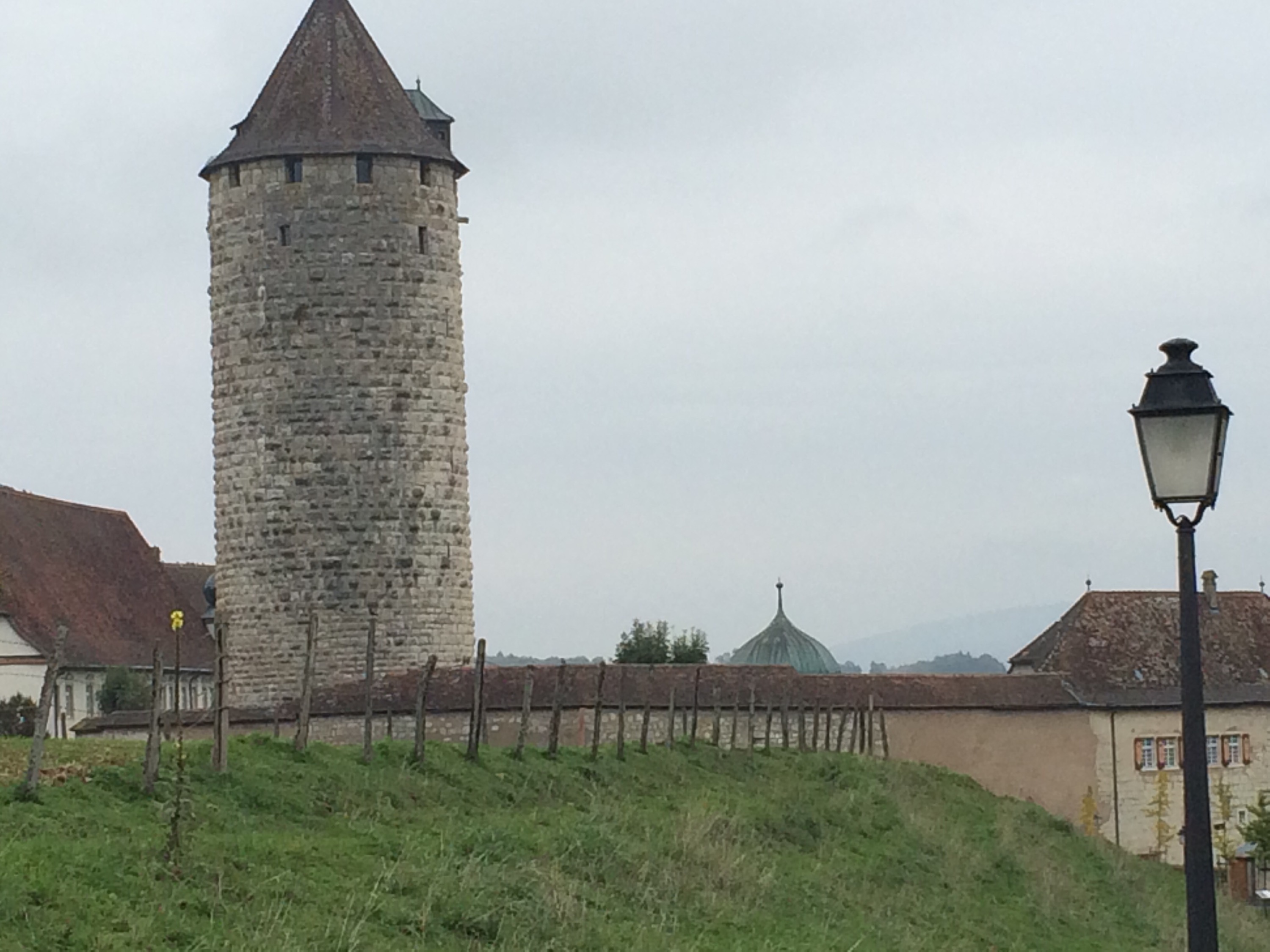 There is a red shepherd’s crook on tower to the right. That shepherd’s crook is actually the crest of Basel. It was fun clue as to the history of the area.