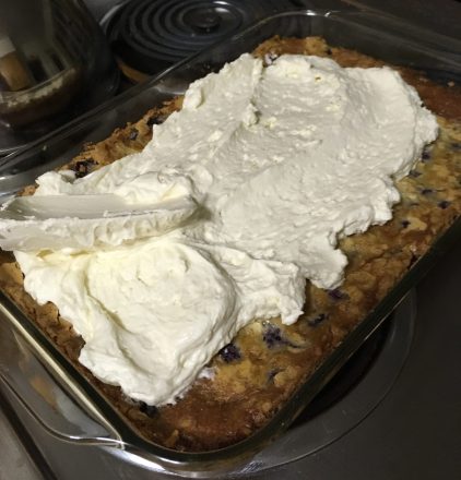 Remove the bars from the refrigerator and dump the whipped topping on top of it. Gently spread it over the bars until it is of an even thickness. Chill the bars for at least 2 hours or overnight.
