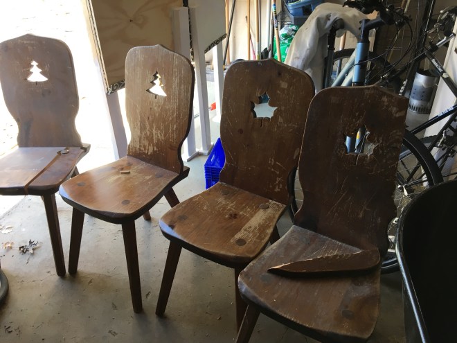 Twelfth, these chairs! I got them off Free-Cycle in a fit of insanity brought on by watching DIY trash-to-cash shows on Netflix. I have a vision for them. One of them is badly broken and might need professional help. Or I can pull it completely apart and fashion it into a bench with its chair-mate.