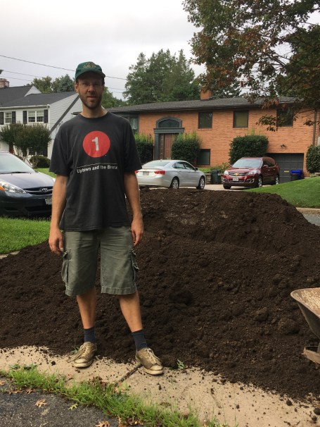 And then for the part I am super, duper excited about. The terrace between the gardens! We are putting down landscaping cloth and spreading pea gravel over the top to create a nice area for a fire pit and a couple of chairs. It’s not done just, but we are getting close.