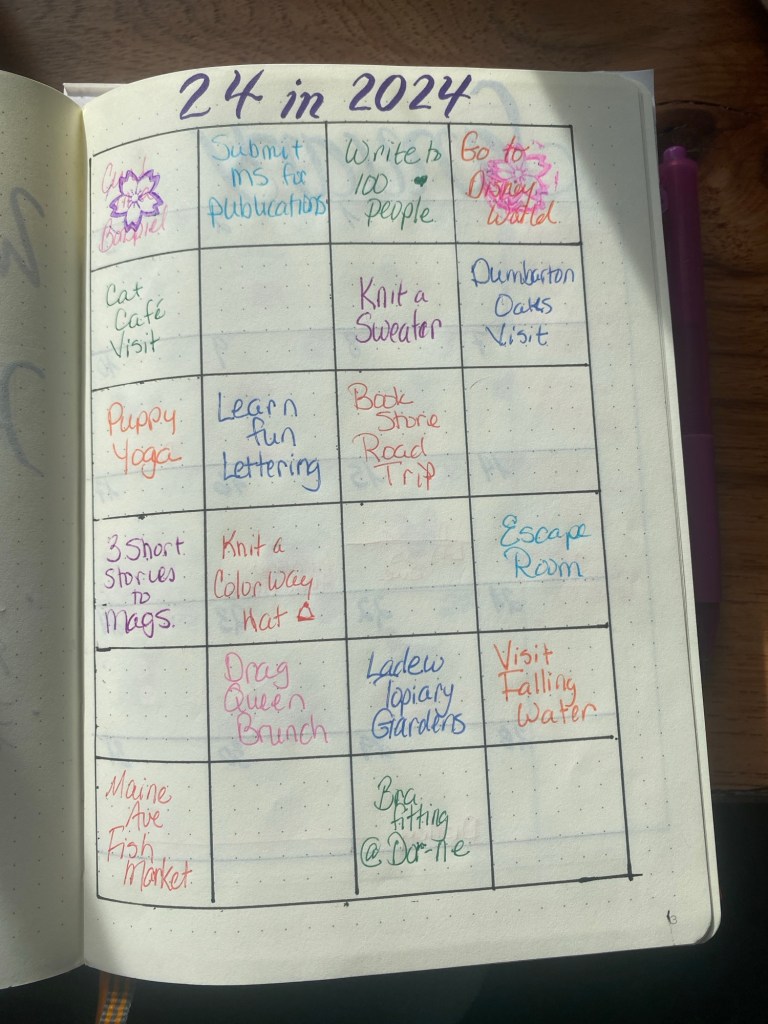 At the beginning of the year, I decided to participate in something called “24 in 2024.” It’s a Bingo card full of items you want to do in the coming year. I filled mine with a few projects, adventures, and events I thought would be fun.