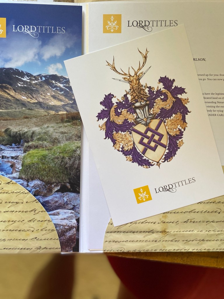 Our friend’s 16yo was extremely delighted by this and referred to him as “Your Lordship” for the rest of the week, which, in turn, delighted the rest of us. Then there were discussions of inheritance and our children were disappointed this isn’t an inheritable title. If they want to be lords they have to buy it for themselves.