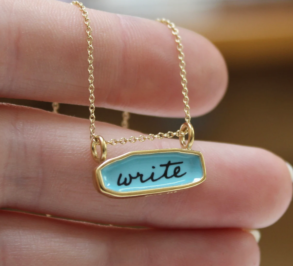 And as a final pick, who doesn’t love jewelry? I was cruising Etsy, as I like to support other creatives, and found this fun pendant with the word “write” on it.
