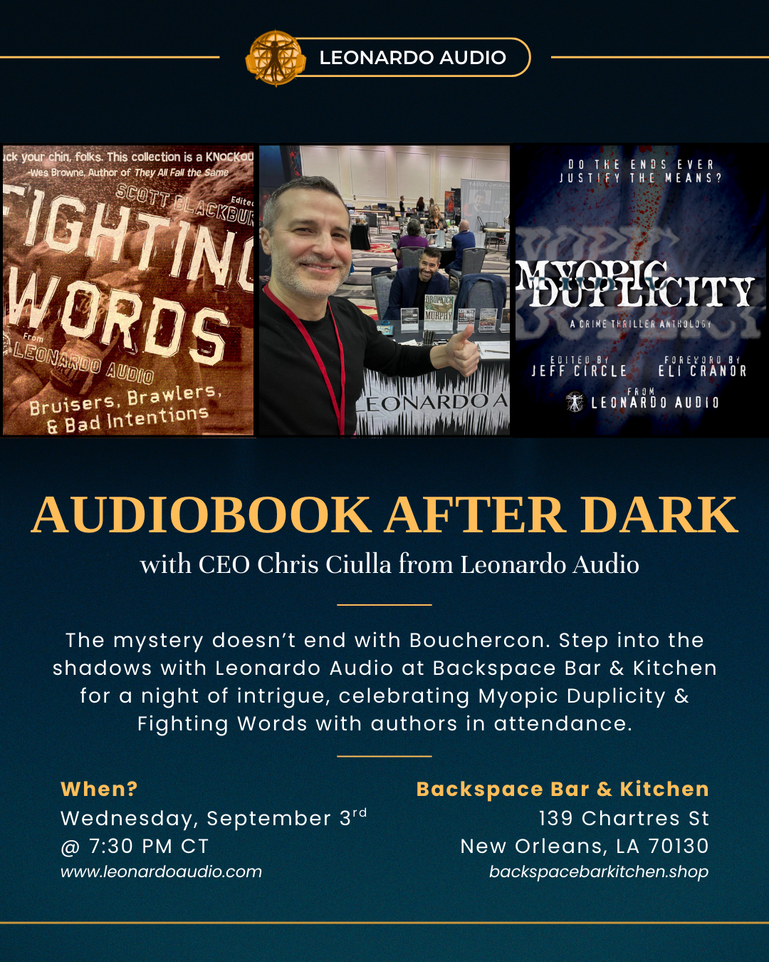 And on Wednesday (which comes before Thursday everywhere, but in my brain) we’re celebrating the launch of MYOPIC DUPLICITY at the Backspace Bar & Kitchen, also in New Orleans at 7:30pm.